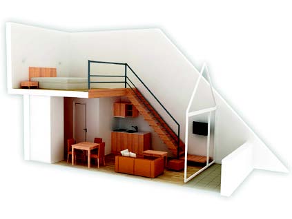 такие квартиры предлагаются со скошенными потолками и мансардными
